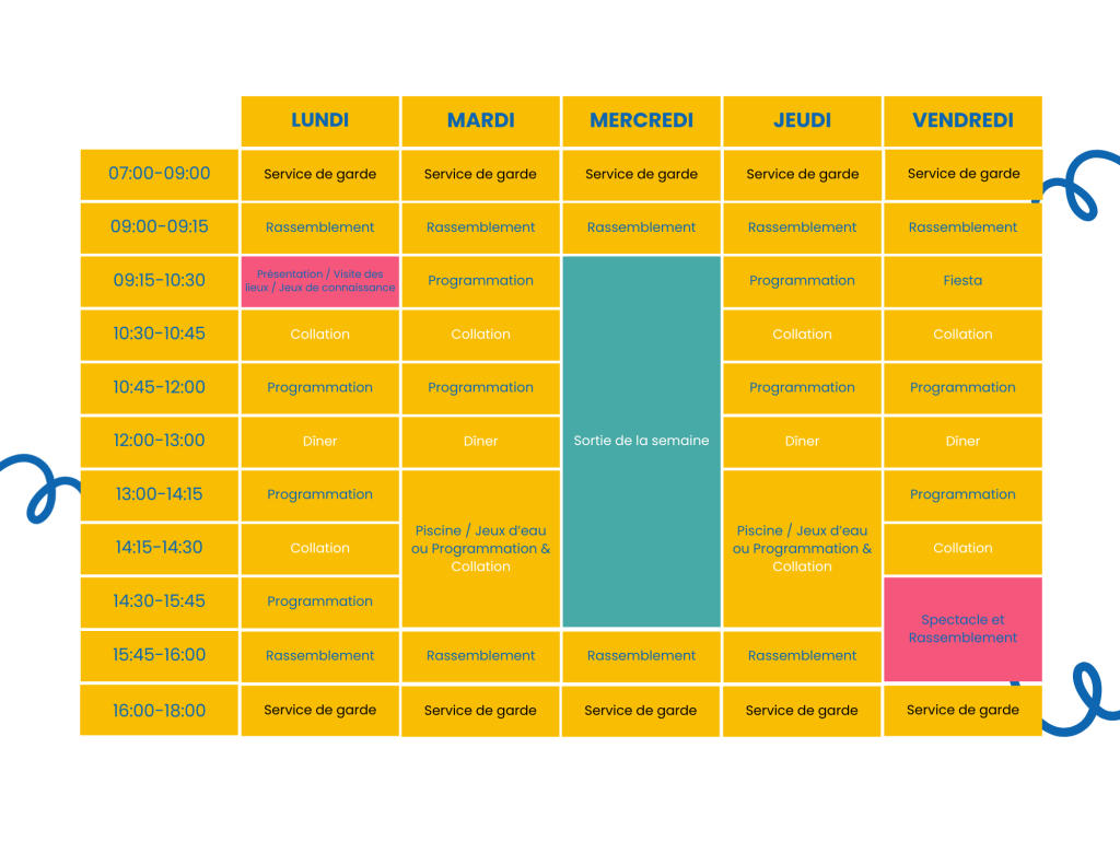Les places sont limitées pour chaque groupe d’âge et certaines semaines se remplissent rapidement.