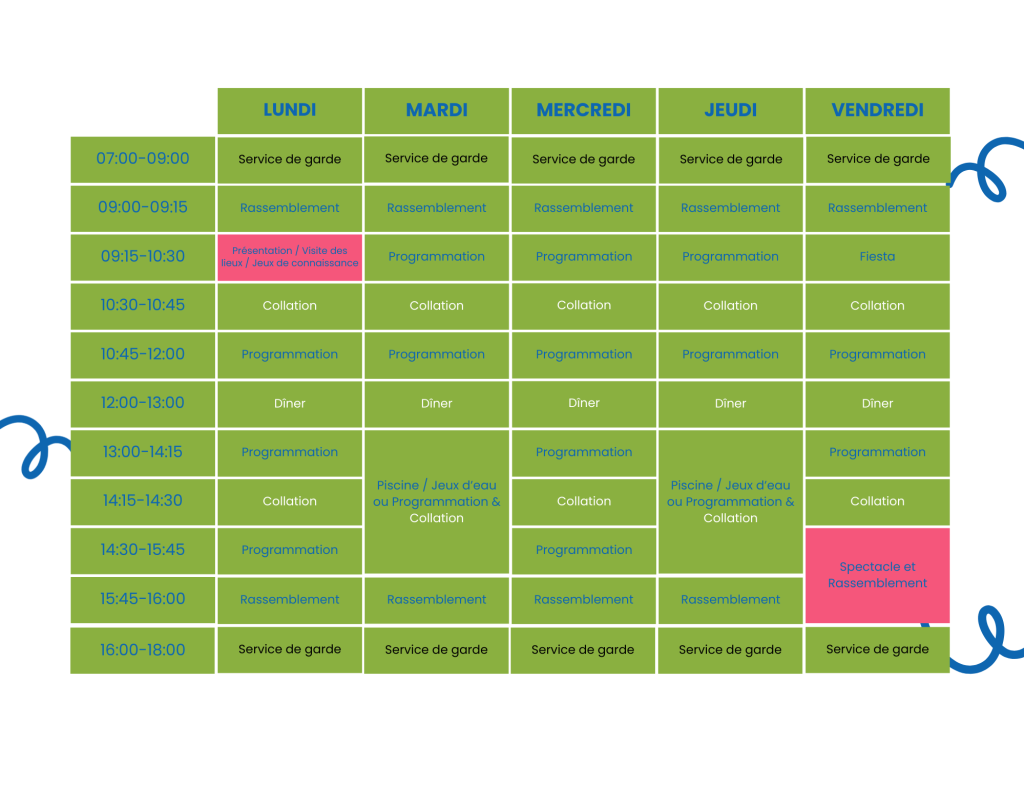 Les places sont limitées pour chaque groupe d’âge et certaines semaines se remplissent rapidement.